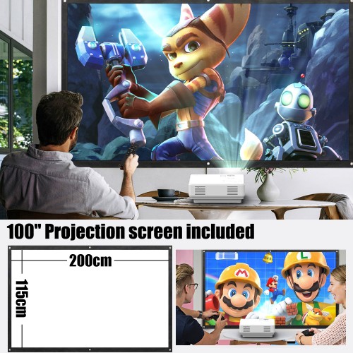 Projector with WIFI, Projector for Outdoor Movies, Support 1080P, 100" Projector Screen Included